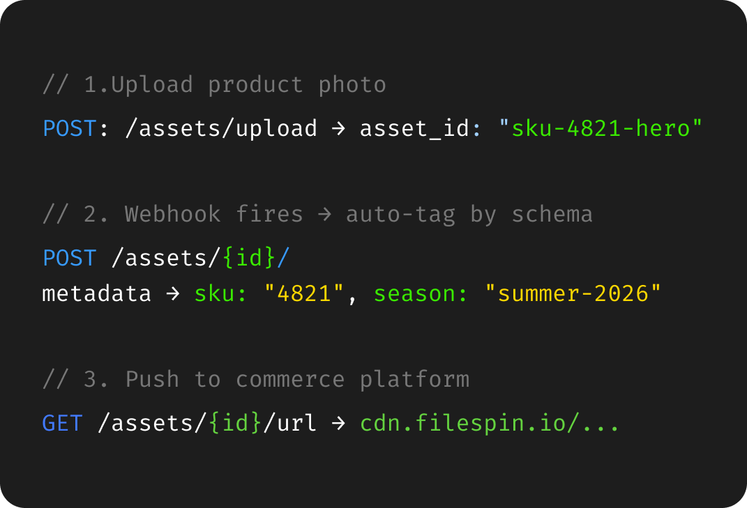 FileSpin's composable REST APIs plug into your existing PIM, CMS, commerce platform, and marketplace connectors — without forcing a rebuild.
